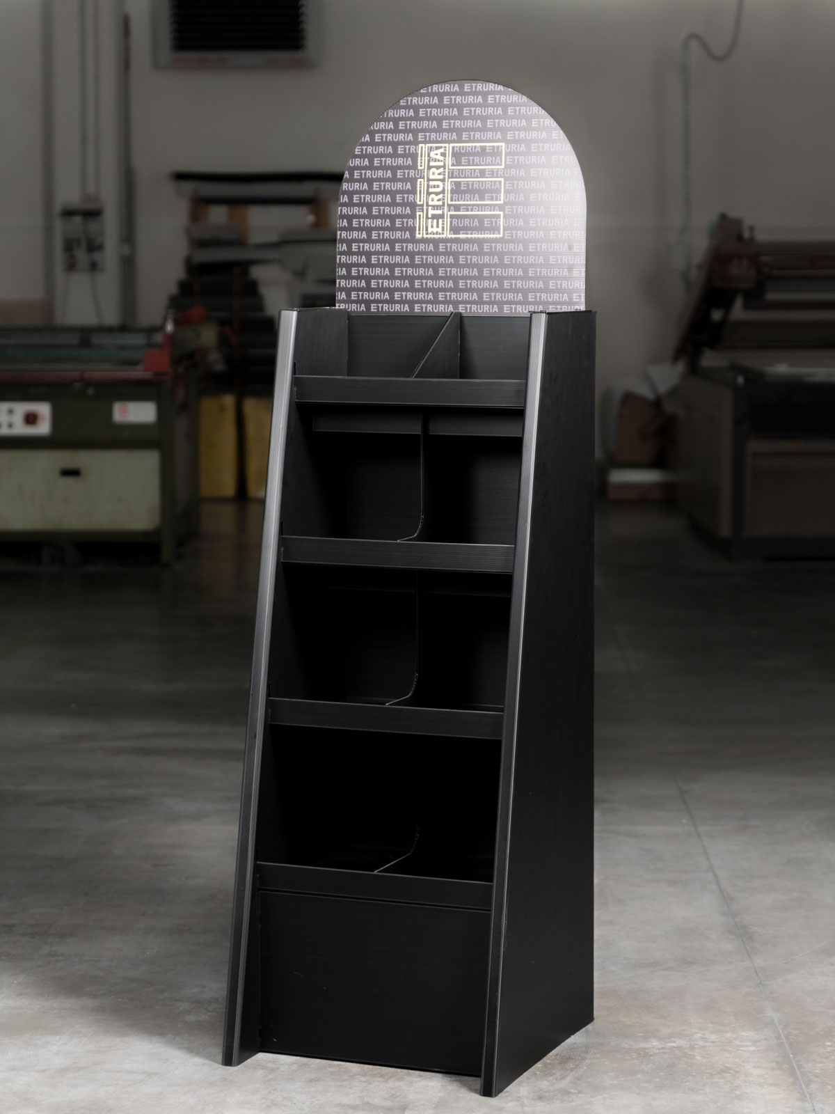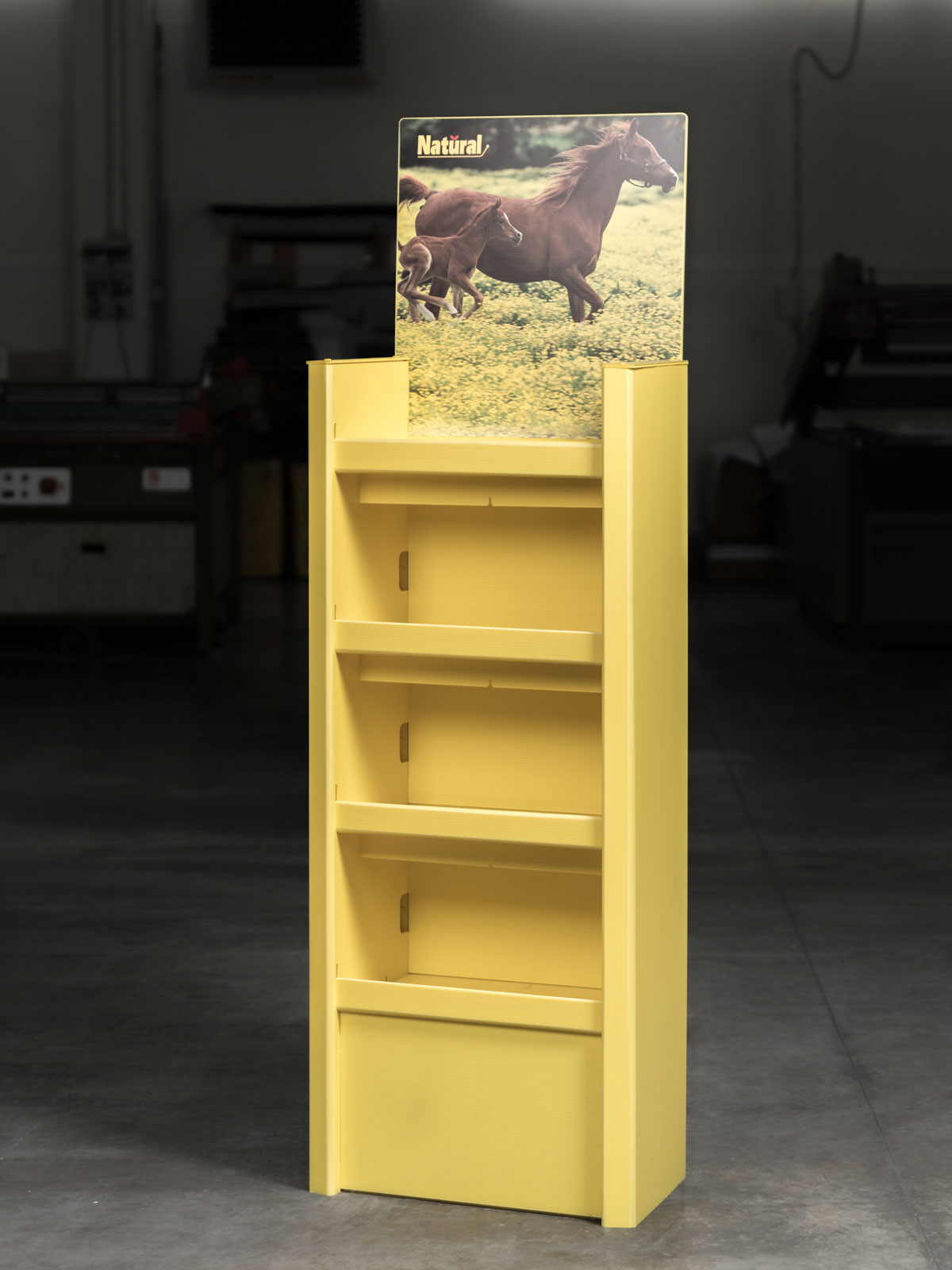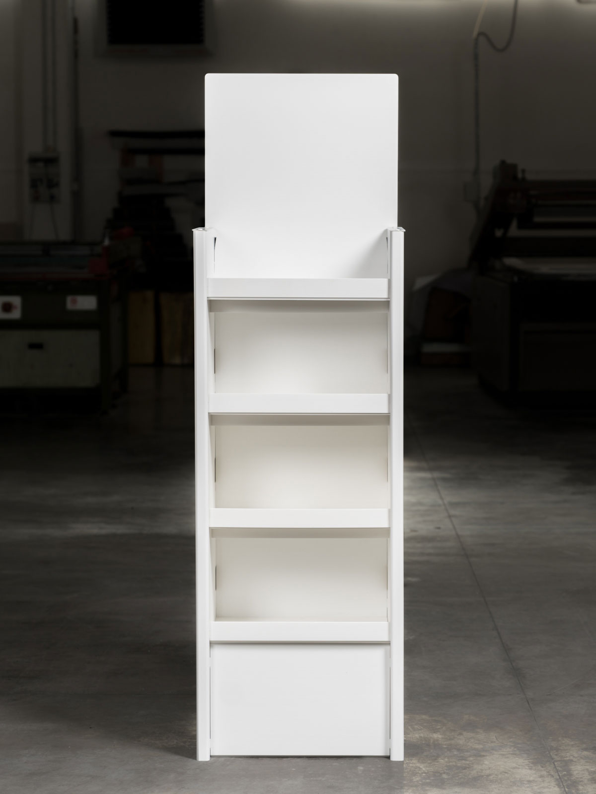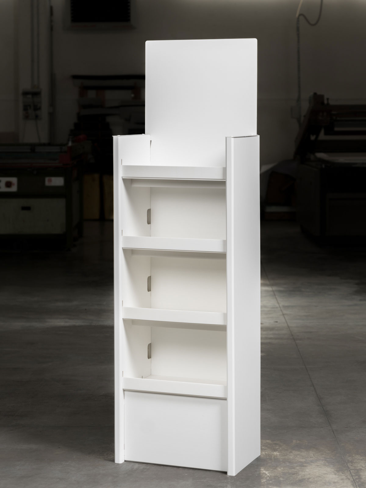 In base al tipo di prodotto da esporre vengono stabiliti insieme al cliente il numero di piani, la robustezza dell’espositore, l’altezza e l’inclinazione dei frontalini, e poi ancora il colore del materiale e il tipo da grafica da riprodurre.