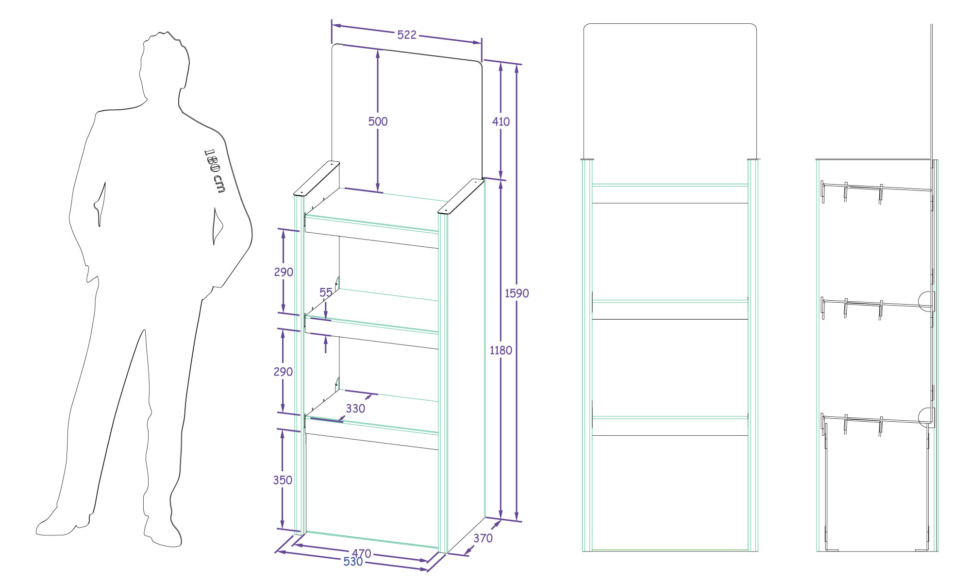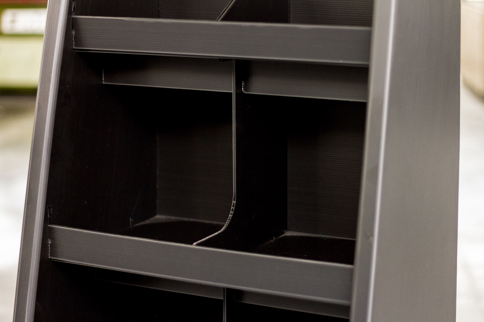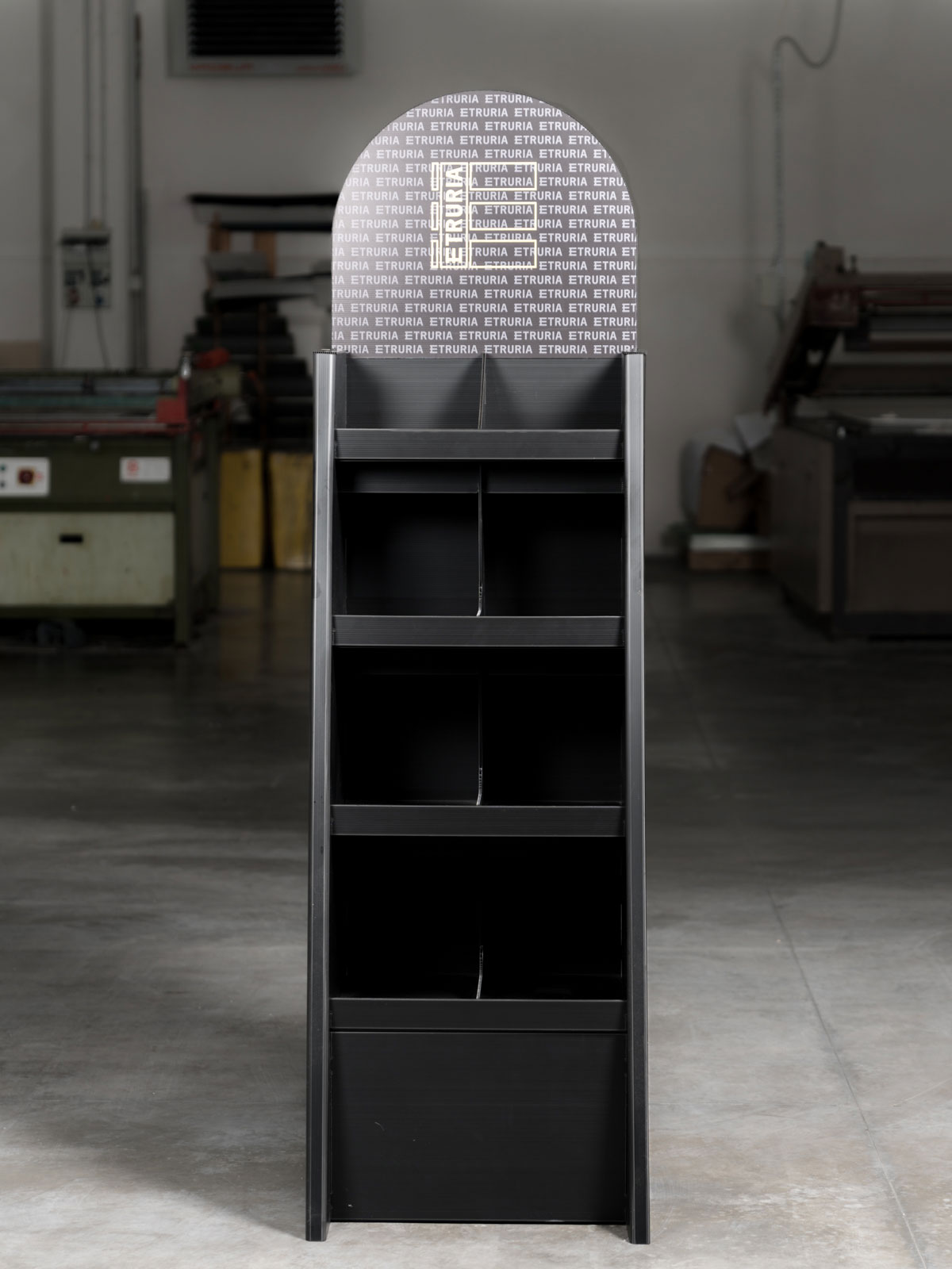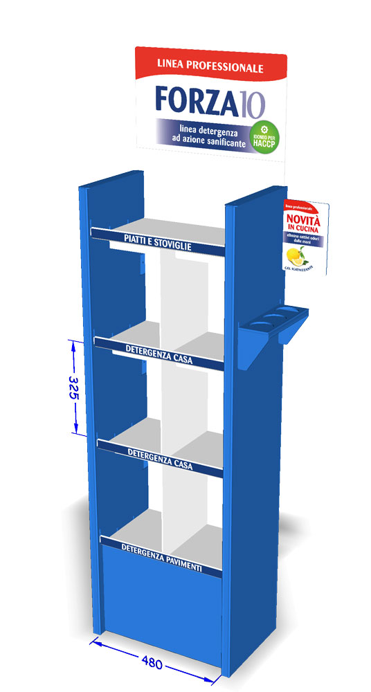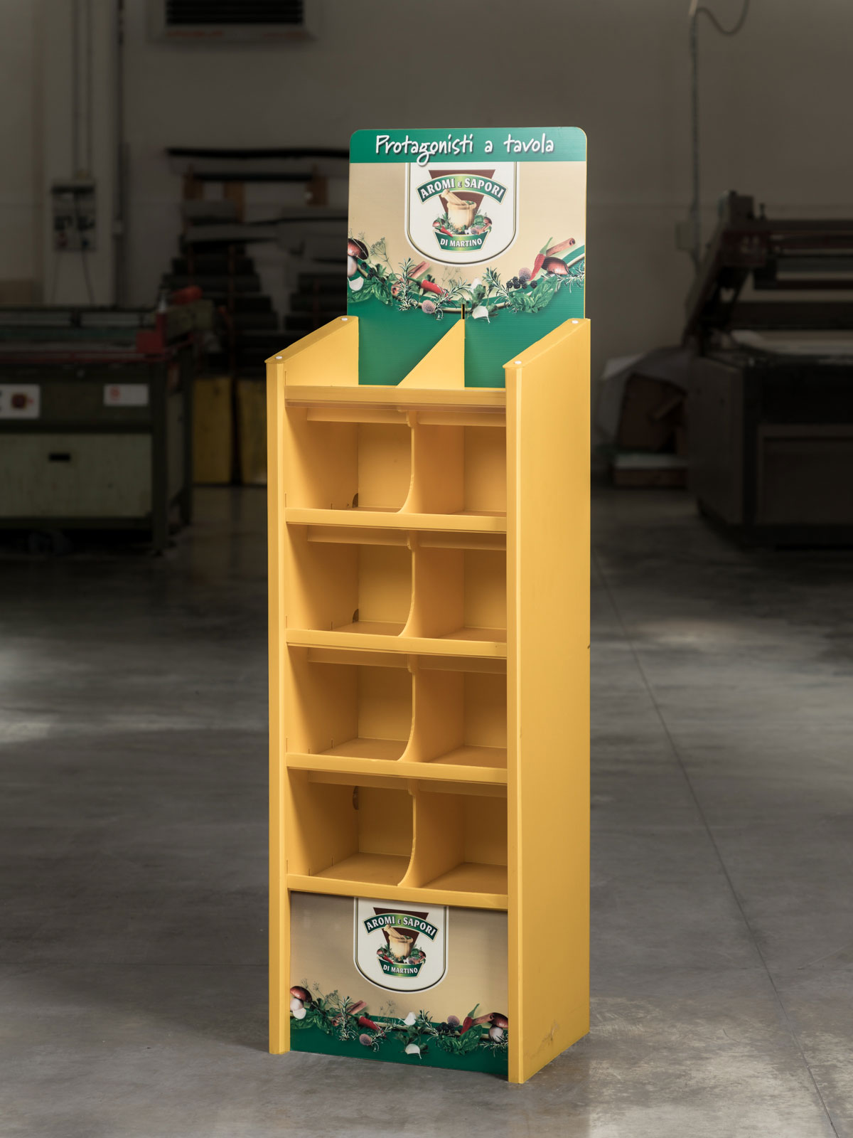 In base al tipo di prodotto da esporre vengono stabiliti insieme al cliente il numero di piani, la robustezza dell’espositore, l’altezza e l’inclinazione dei frontalini, e poi ancora il colore del materiale e il tipo da grafica da riprodurre.