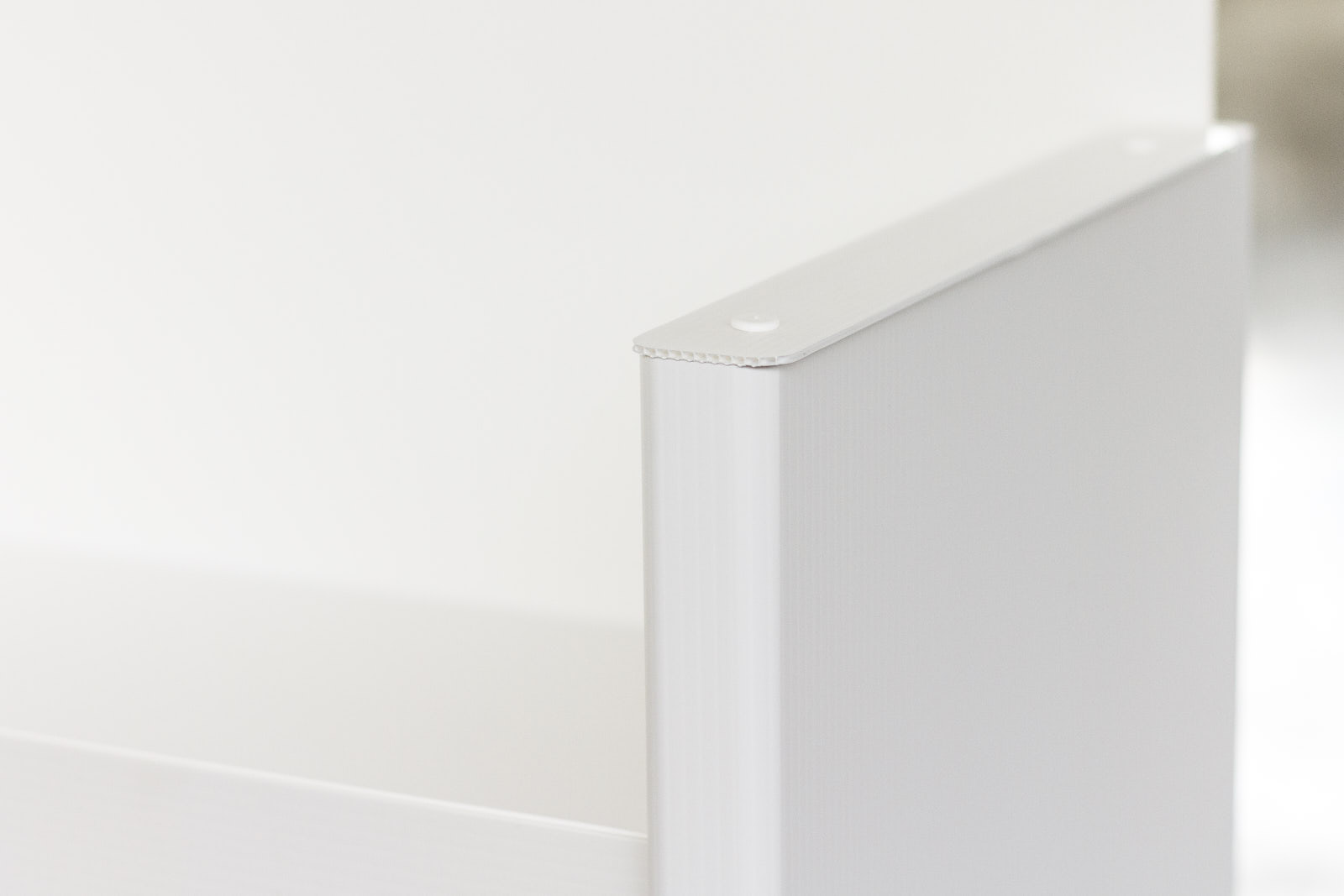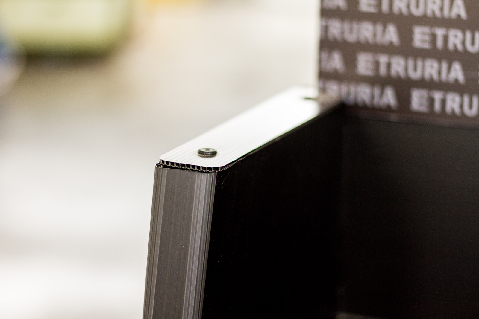 UTILIZZO E CURA: L’espositore elegante è realizzato in polipropilene alveolare, un materiale resistente agli urti, lavabile, sterilizzabile, atossico, inodore, impermeabile. Può essere collocato all’aperto.